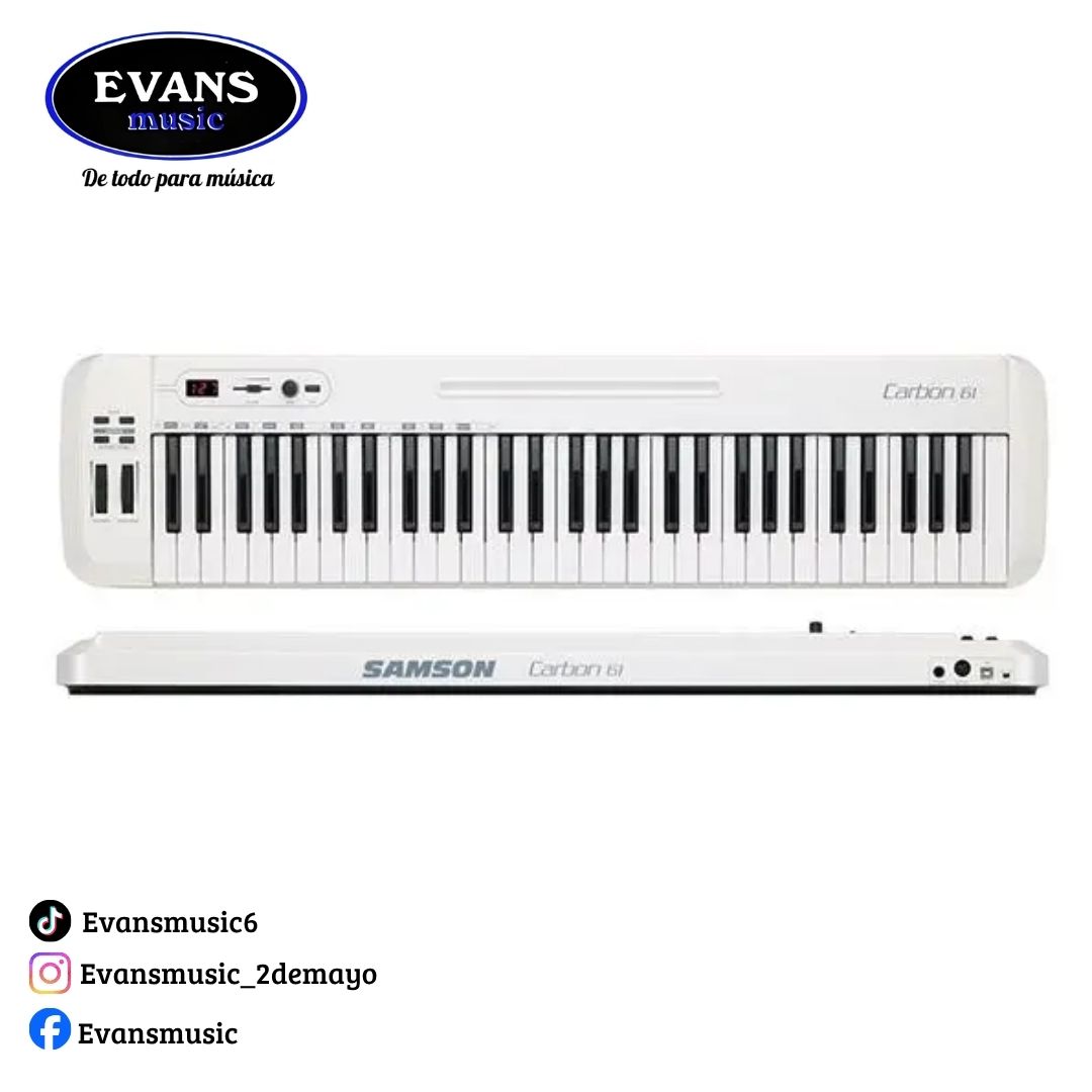 Samson Carbon 61 – Controlador Midi USB hace que el rendimiento musical y la producción sean accesibles para todos. Tanto para músicos experimentados como para jóvenes creadores, el Carbon 61 ofrece características versátiles y fáciles de usar en un controlador compacto y liviano que es adecuado para el escenario y el estudio.